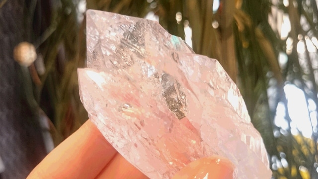 とてもとても美しいカテドラルです。 氷のようなので、夏は大丈夫かしら、と思ってしまいます。 中を覗くとキラキラしています。 こういう美しいカテドラルに出会うとつい買っちゃう。 すごい石が好きな人(世間ではマニアと言う)しか見ないだろーなー、と思いつつ、そして予想通り、こんなにキレイなのにお店でもあまり人目に付くことなく控え目に輝いている・・・。 まるで山奥にひっそりと佇む、めったに人が訪れない教会のような・・・、あ、だからカテドラルかー。 キレイなんですよ、ほんとに。 ポイントも完璧。 底の部分がむっちゃ斜めになっているのでお店では寝かせて置いているのですが、底も結晶が付いています。 (60倍の拡大ルーペで見たら、小さな小さな水晶の結晶がありました。感動~!) 採掘の時に斜めに割れたのかと思っていましたが、違いますね。 この美しさをわかってくださる方、求む。 サイズ 最大幅約84mm×37mm 産地はブラジル ミナスジェイラス ☆美しきカテドラル☆ このカテゴリーでは、凛とした、まさしく「聖堂」のような美しさのカテドラルをご紹介。 神々しくもある美しさをお楽しみください。