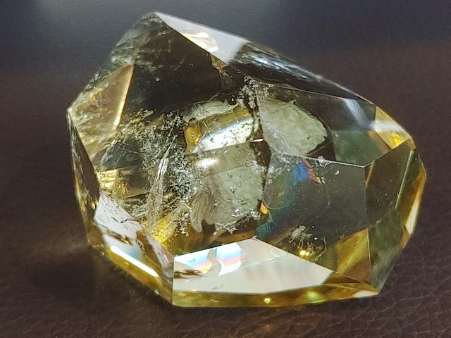 ほんとにね、宝石みたいなシトリンです。 ザクザクとしたラフカットが美しさを引き立てます。 レインボーも出るし、よく見て、ファントムが入ってる!! シトリンって風水で「金運アップの石」と言われて、それで探しに来る方が増えたことがあるりますが、だいたいお財布に入るくらいの小さいのを買われる方が多いんですよね。 でもね、こんな美しいシトリンがお部屋にあるのを想像してみてください。 すごく豊かな感じがしませんか? まずは気持ちから。 これは大事。 いい石が生活の中にあるって、マジでいいと思います。 いかがでしょうか。 産地 ブラジル サイズ 約40×40×37mm