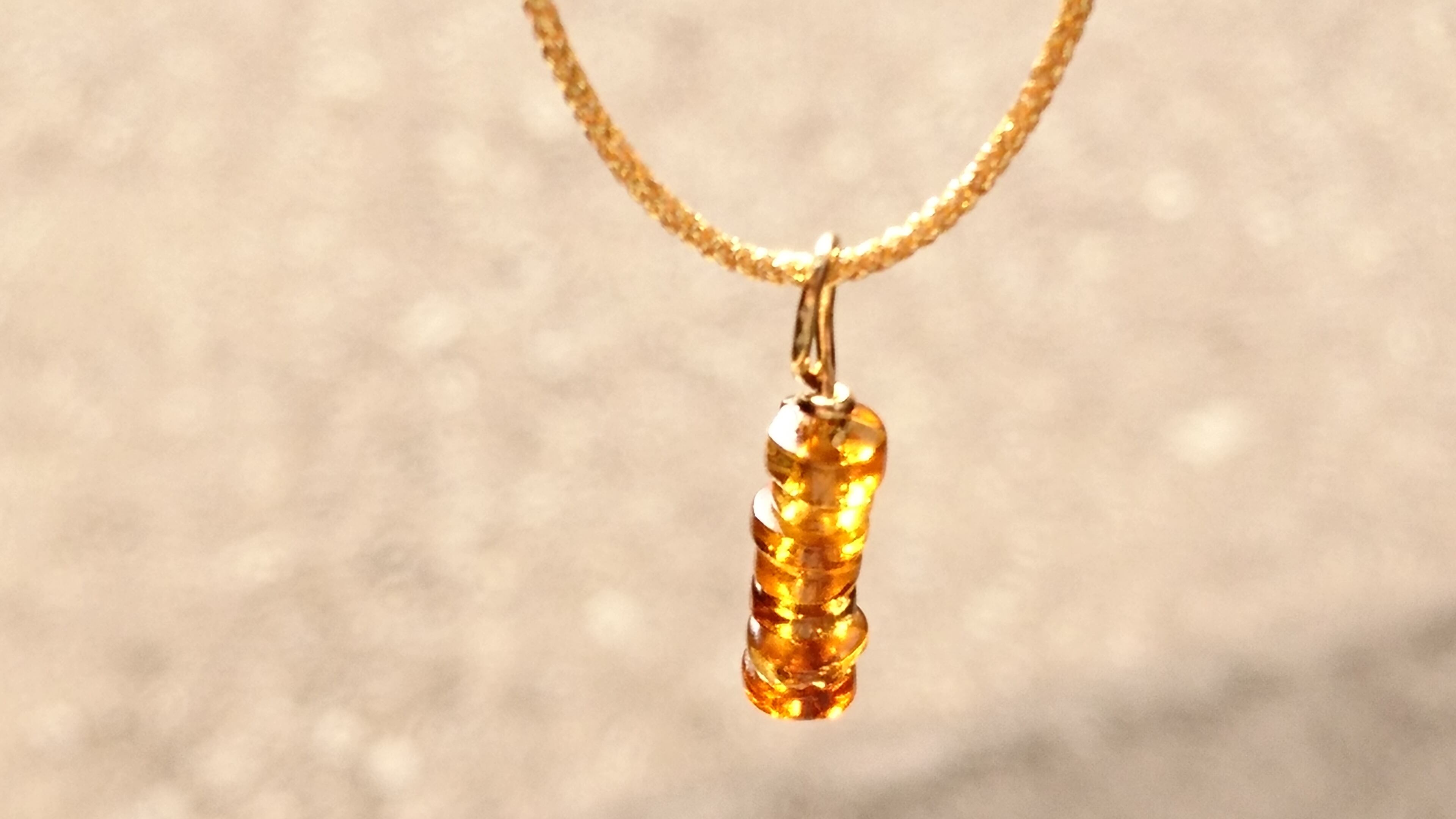 細身のゴールドのチェーンに下げたりするとカッコいいと思います。
