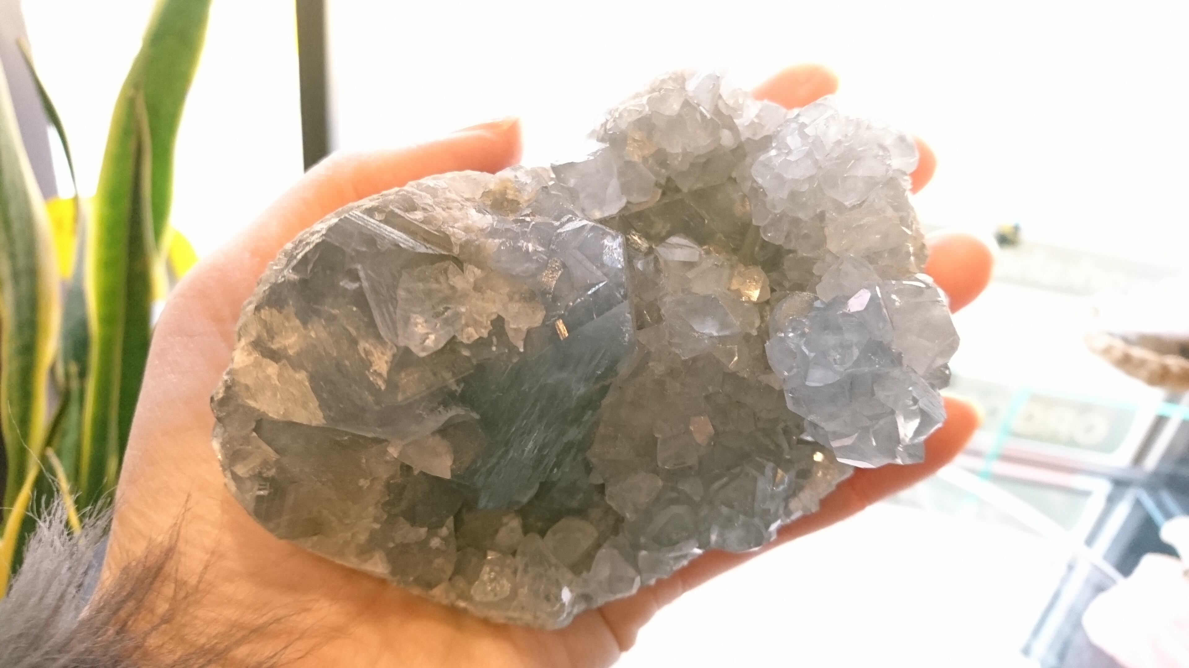 最近は白っぽいセレスタイトも多いですが、これは「ザ・天青石」。