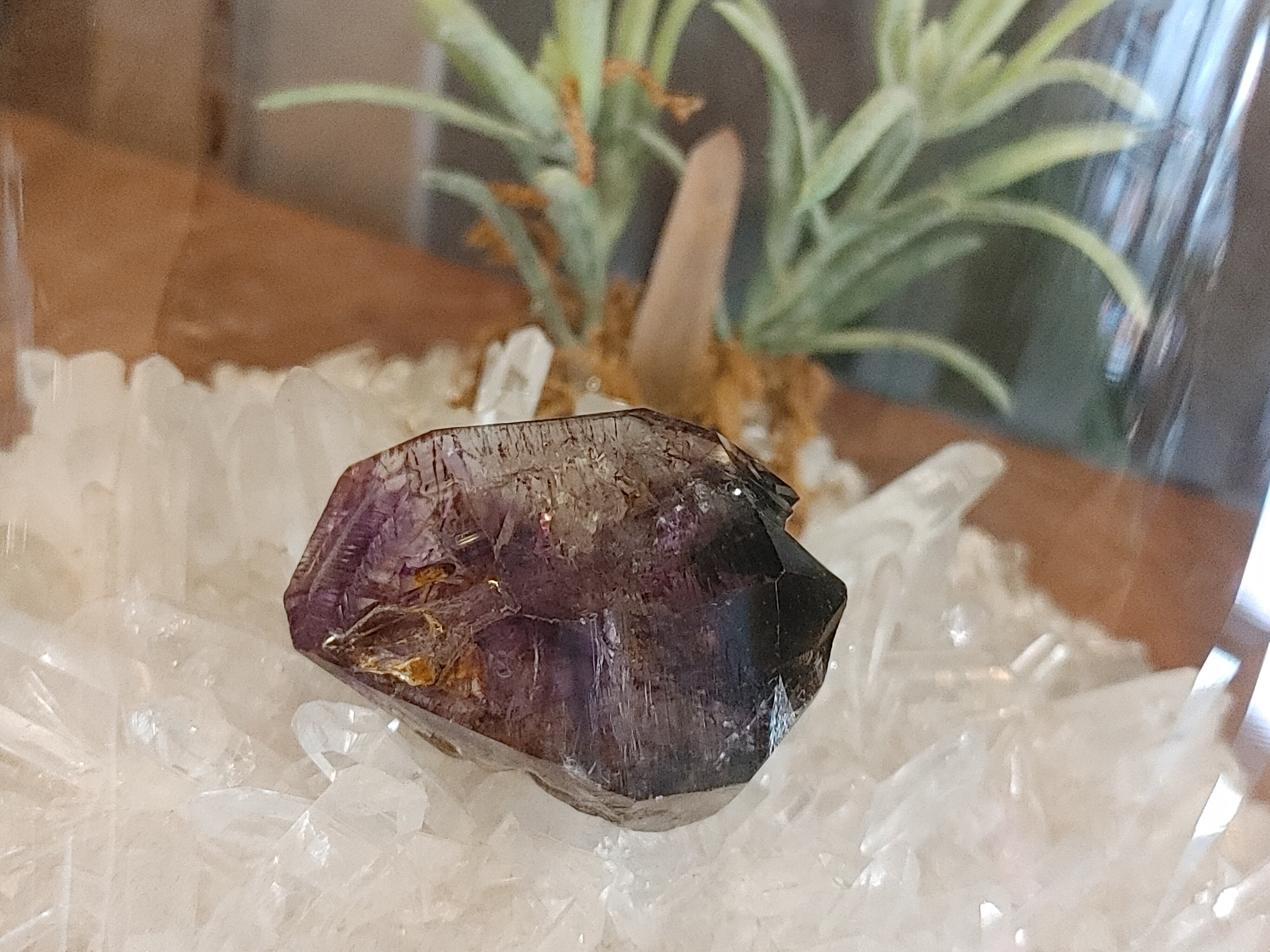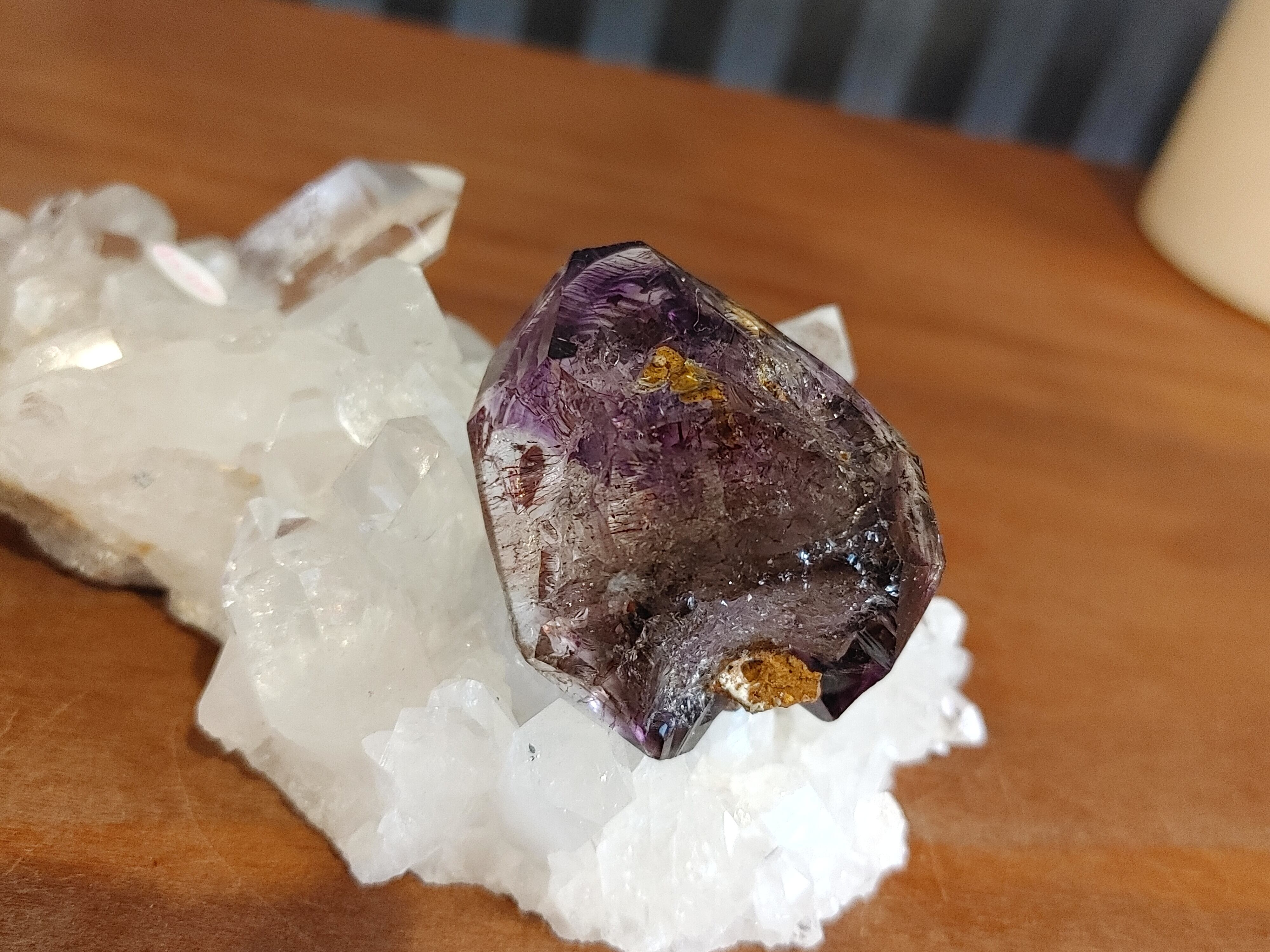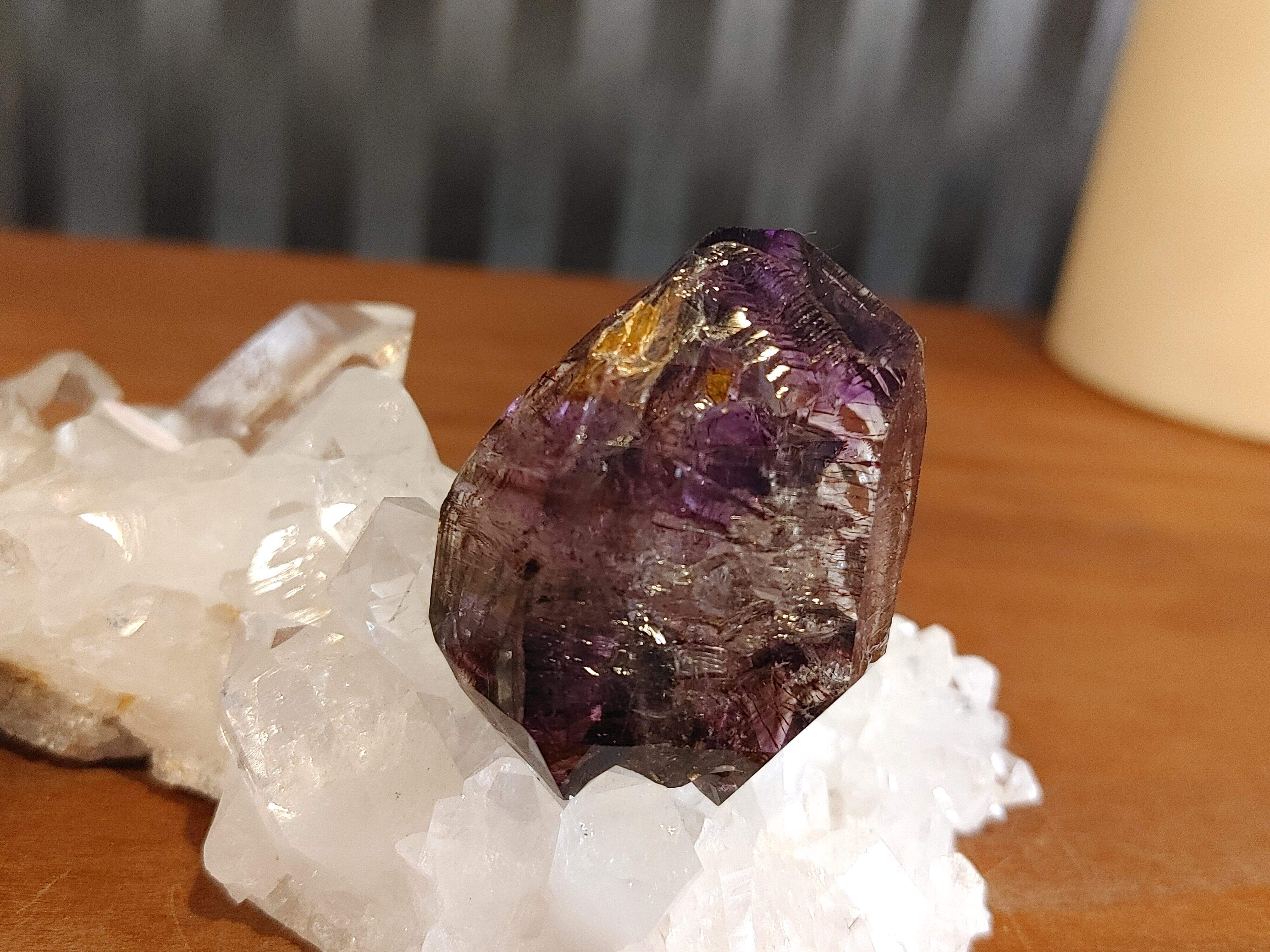エレスチャルって水晶なので、クリアやスモーキー、紫などの色味があるのですが、個人的にはこの紫とスモーキーが混じったものがたいへん好みです。