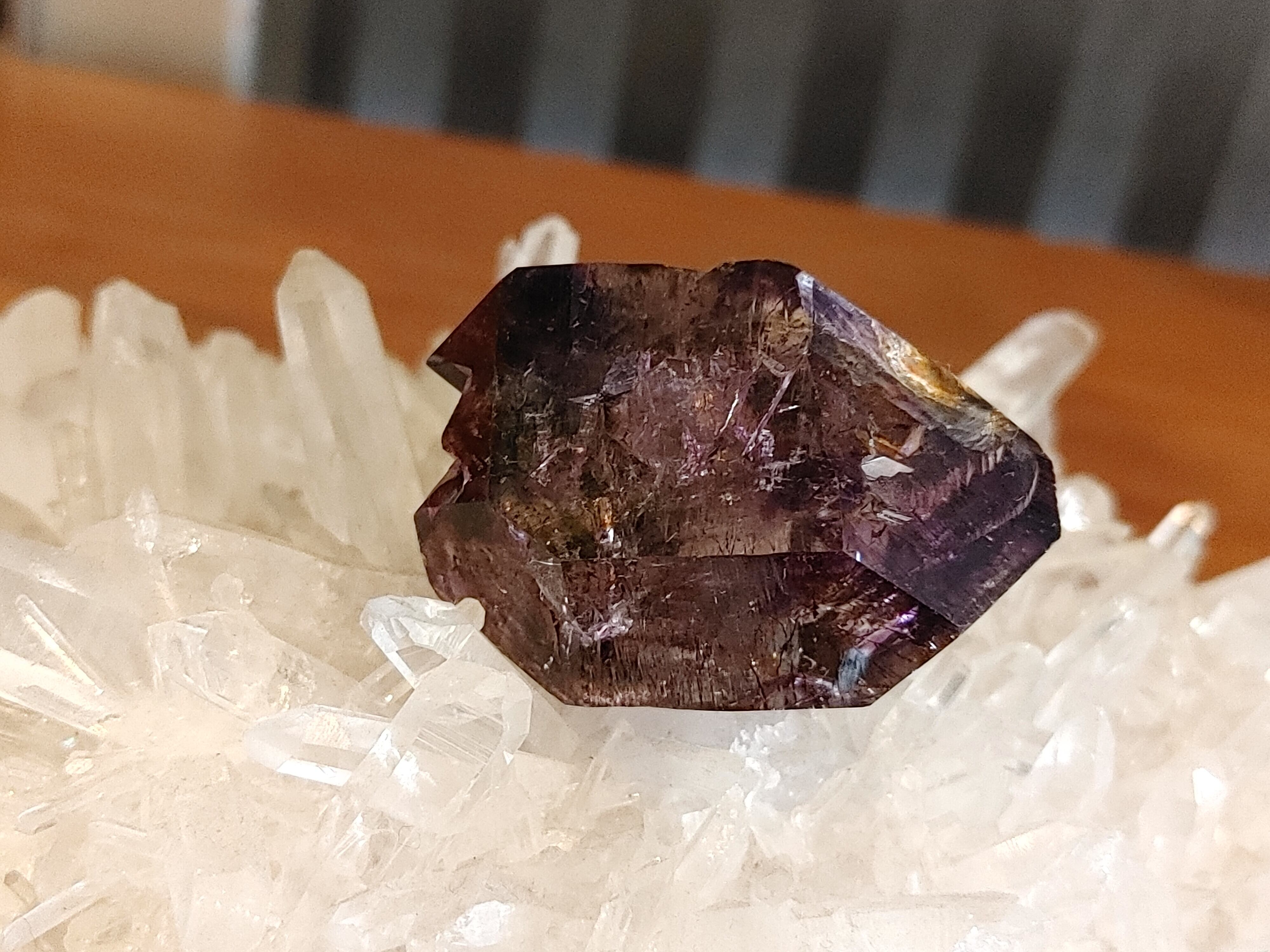 以前書いたことがあるのですが、わたくし出始めの頃のとても美しいスーパーセブンのラフカットを持っていて、ワイヤーラッピングしてもらってペンダントとして愛用していたのですが、「どーしても欲しい」という顧客のしつこい、もとい、熱い要望に負けて手放したことがあります。